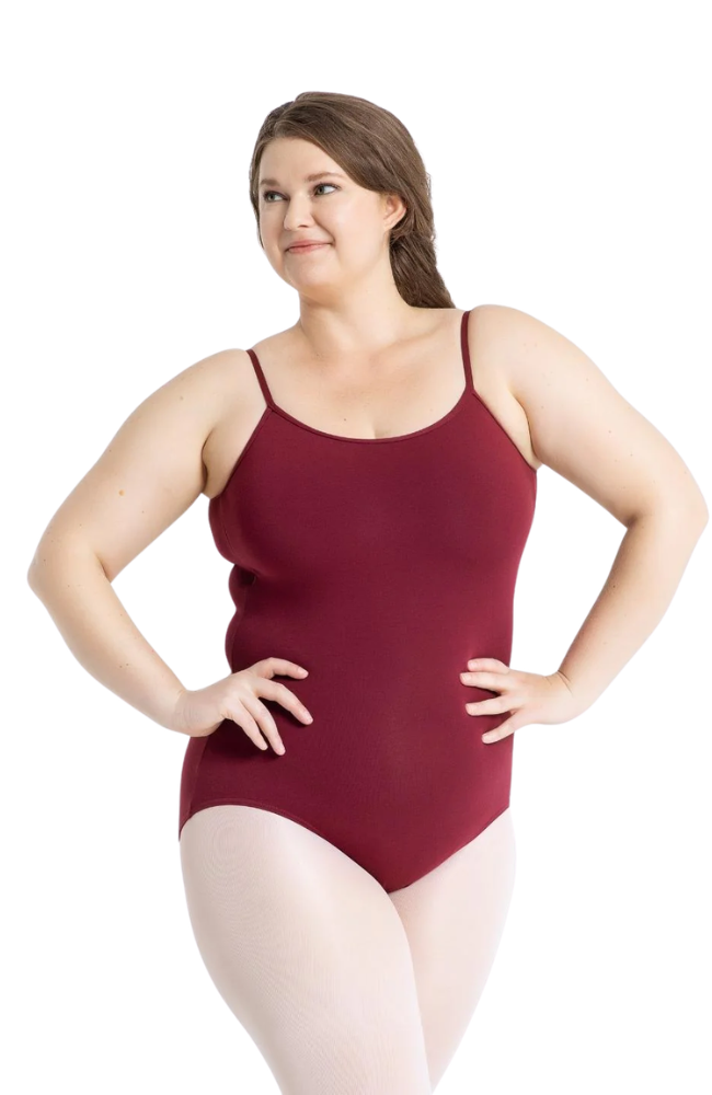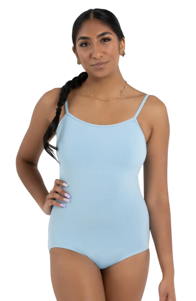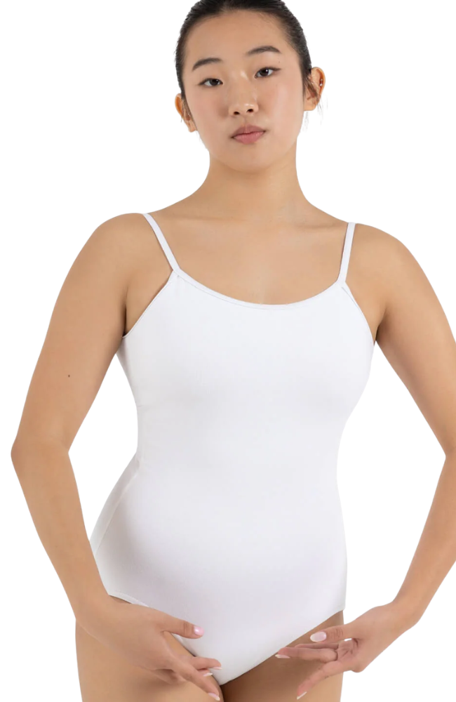 The Camisole Leotard with Adjustable Straps can be worn as is, under dancewear, or as everyday wear. Made of a cotton and spandex blend that is soft and resilient. Features a scoop front, self-fabric shelf bra, and moderate V-back. Adjustable straps ensure the perfect, secure fit every time. Available in assorted colors to enhance your individual style or mood.