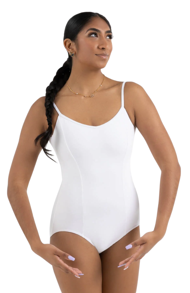 The Princess Camisole Leotard lends itself to a timeless ballerina aesthetic. The moderate v-front gives an elegant look with every move. This best-seller is made of a cotton and Lycra® spandex blend that is soft and resilient. Princess seams create a more tailored fit that closely follows the shape of the dancer.
