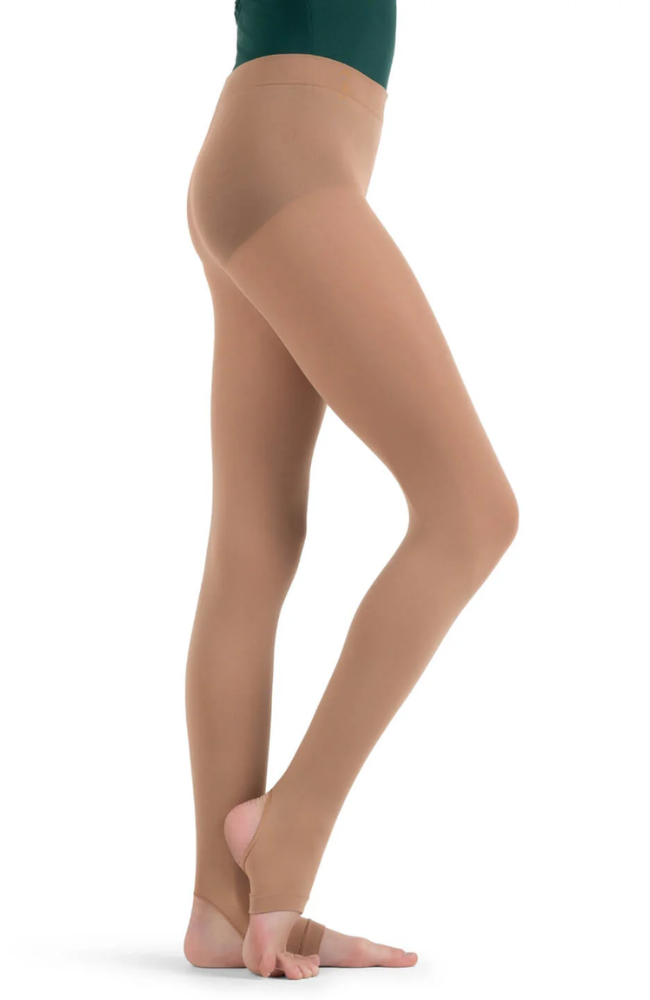 Keep the uniform leg line of tights with the freedom of bare feet. Tights are secured around the arch leaving the toes and heel exposed.