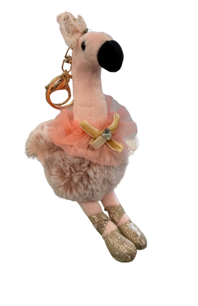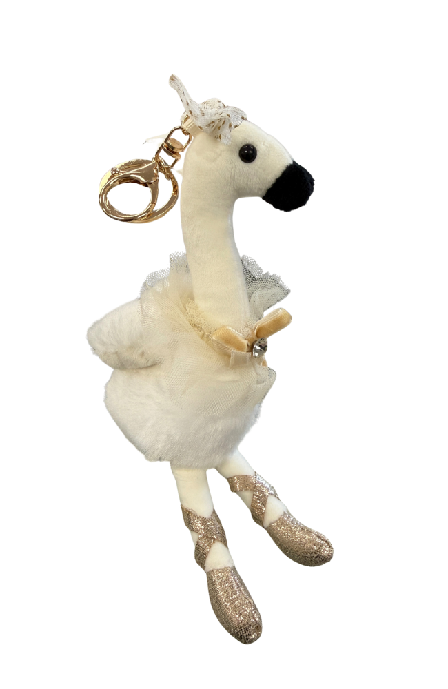 These adorable swan ballerinas are the perfect addition to any bag or purse. Their outfits are highlighted with gold glittery accents and they are complimented with gold hardware.