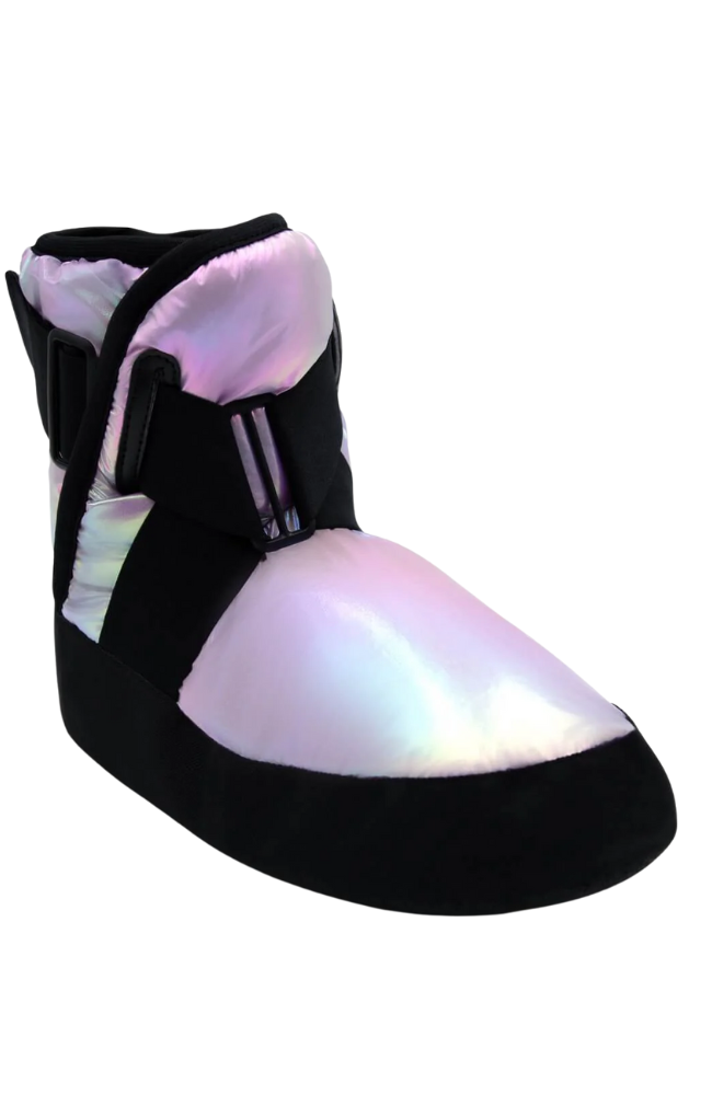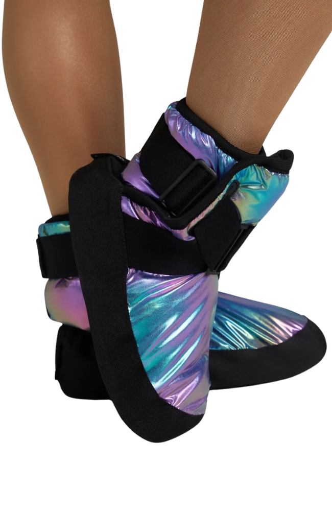 Stay warm and comfortable before and after dance class with our studio-ready Warmup Booties. Designed to be worn over soft ballet shoes and pointe shoes, these booties feature a non-slip cushioned sole that provides excellent boot-to-floor contact and balanced weight distribution—perfect for indoor use. Now in 4 fun, new colors, they keep your feet cozy without sacrificing mobility. Tonal elastic adjustable straps across the ankle offer a secure, custom fit for every dancer. Not recommended for outdoor wear, these booties are ideal for warming up, cooling down, or transitioning between classes.