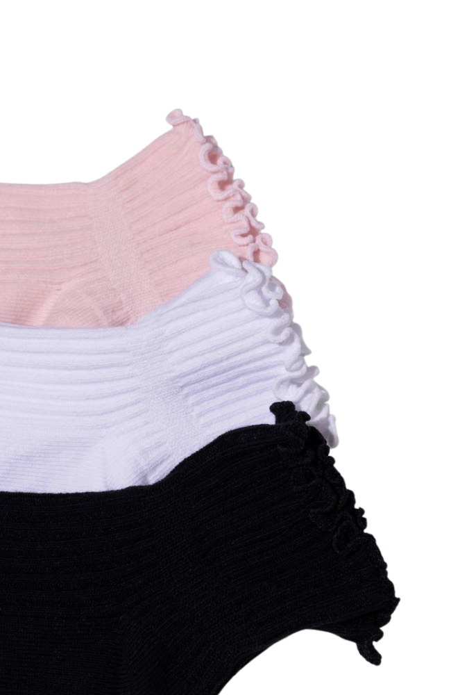 - Each pack includes three pairs (one black, one pink, one white)